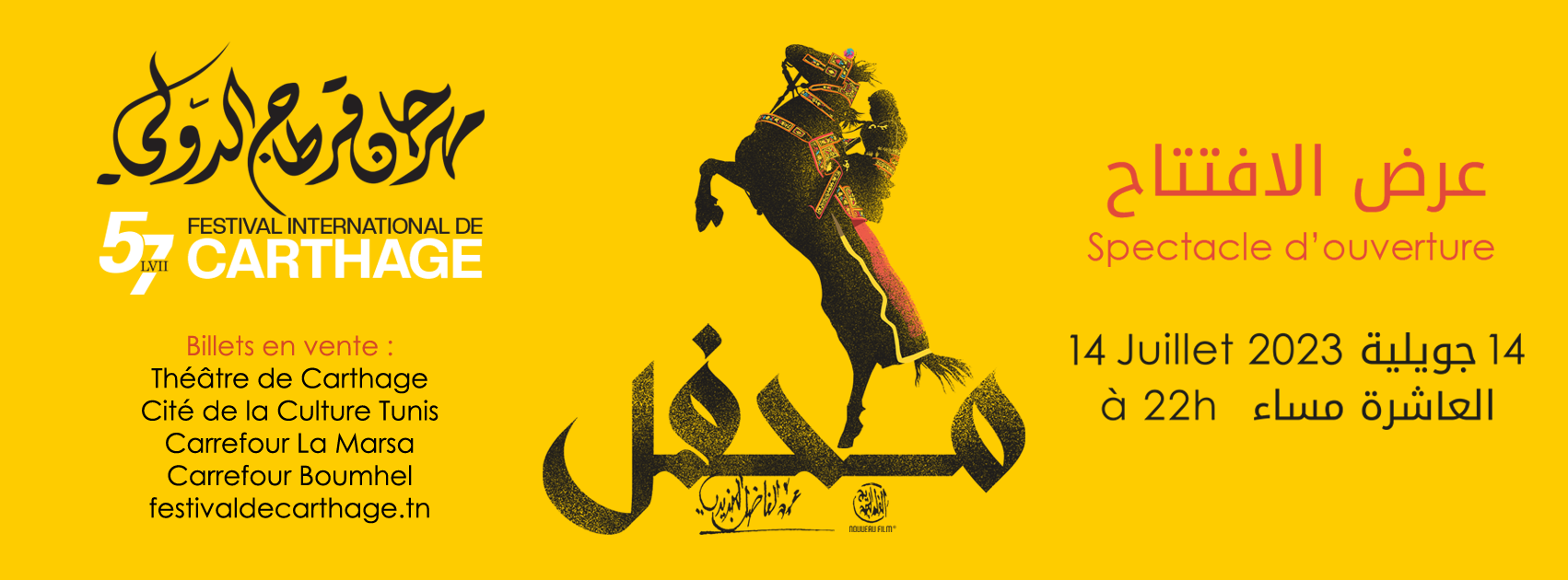 Une centaine d’artistes se déploient sur la scène du Théâtre romain de Carthage avec le nouveau spectacle musical de Fadhel Jaziri, en ouverture du 57e Festival International de Carthage, le vendredi 14 juillet 2023.